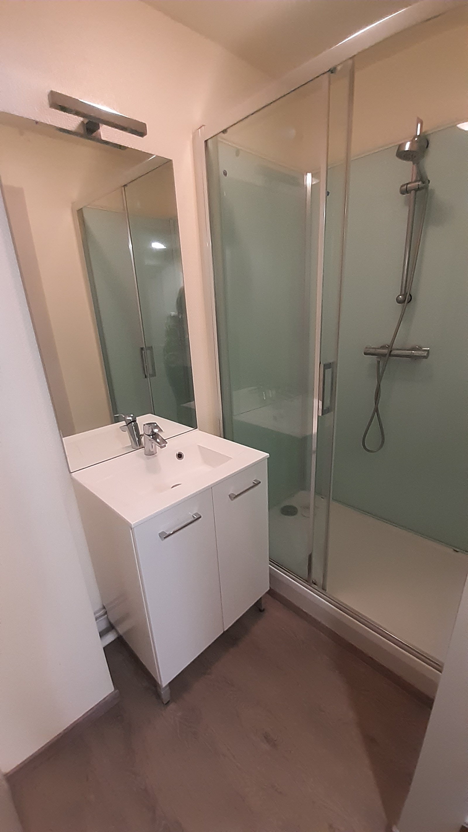 Il se compose d'un couloir desservant une grande chambre avec salle de douche, un wc, et une grande pièce de vie ouverte sur une cuisine aménagée.