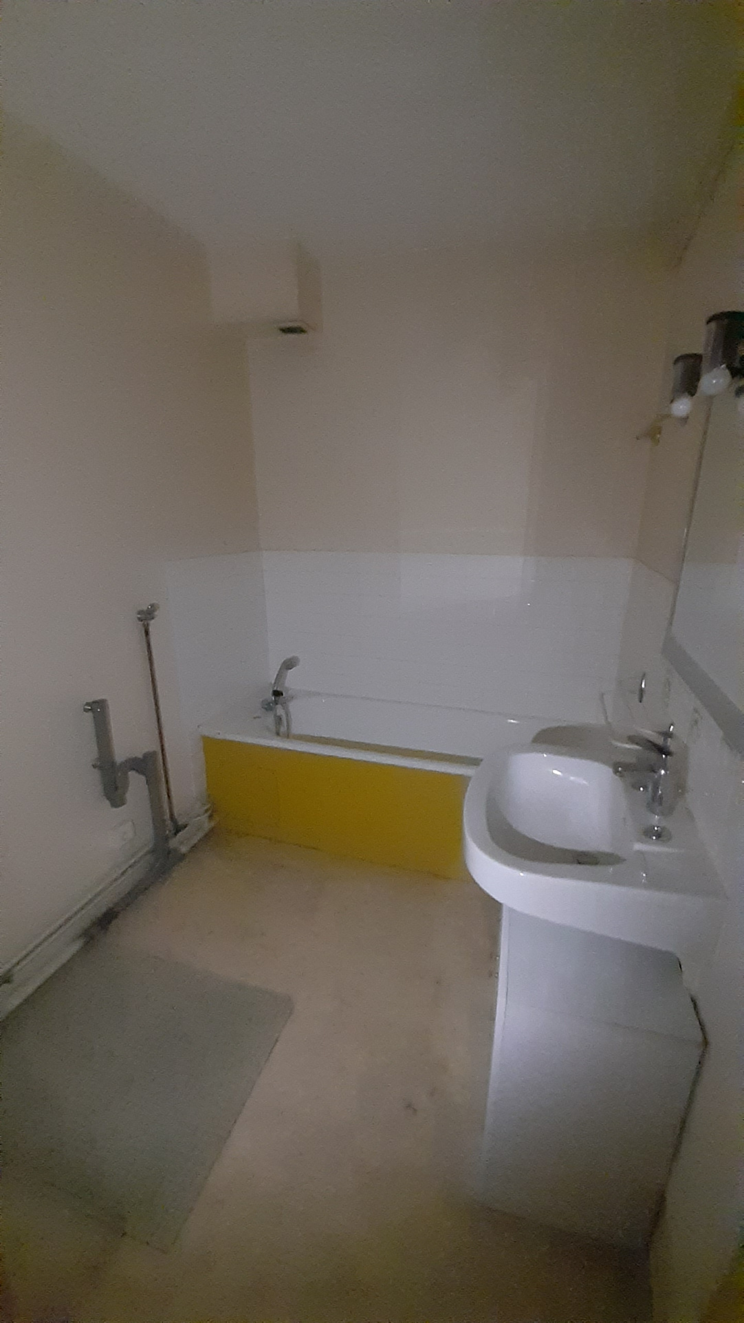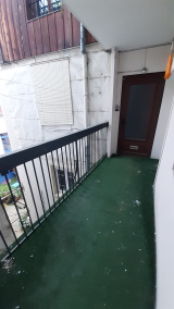 Il se compose d'une entrée, deux chambres, une salle de bains, un wc individuel et un salon/séjour ouvert su un coin cuisine. Le tout avec un petit balcon donnant sur la cour interieure.