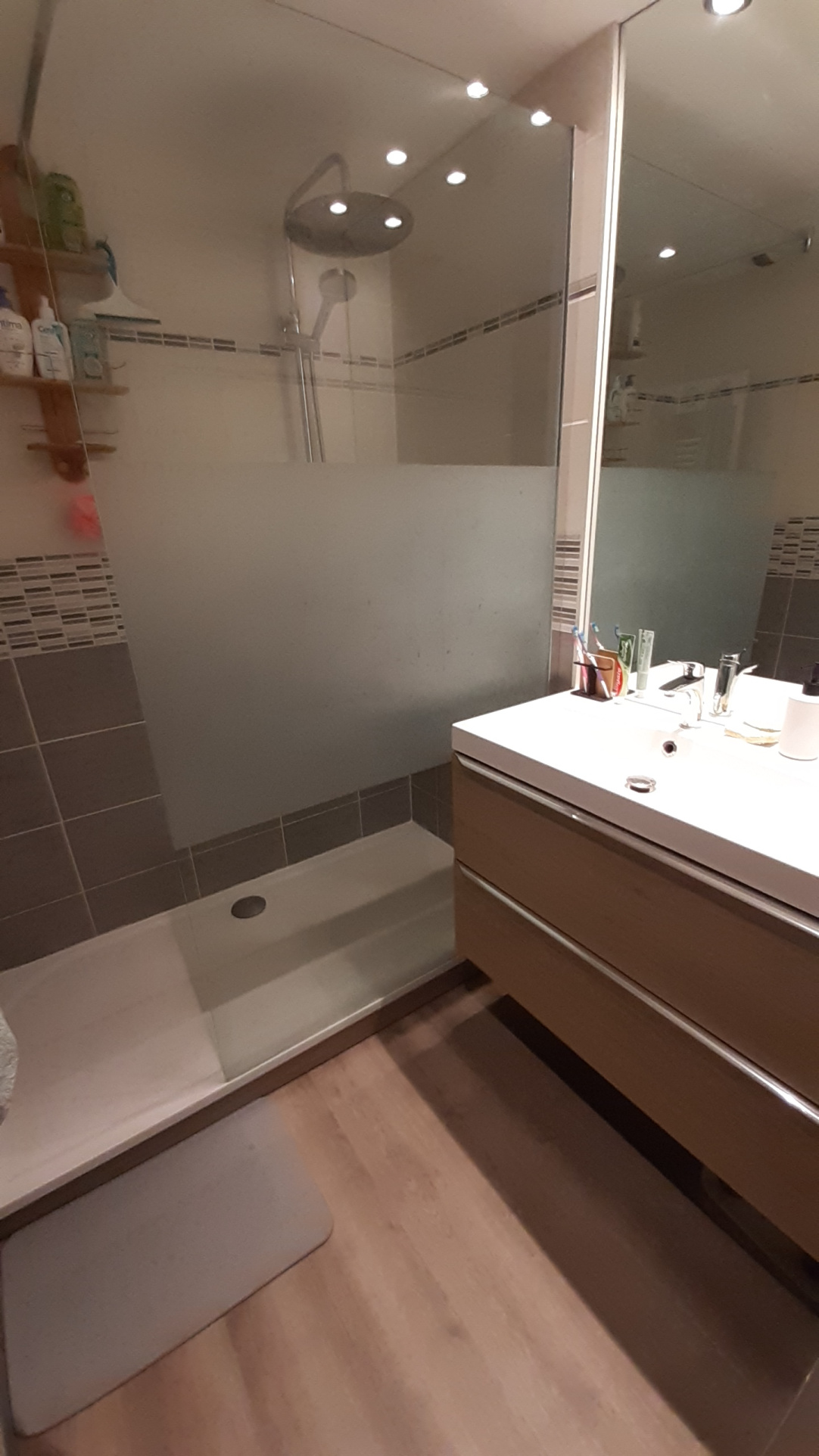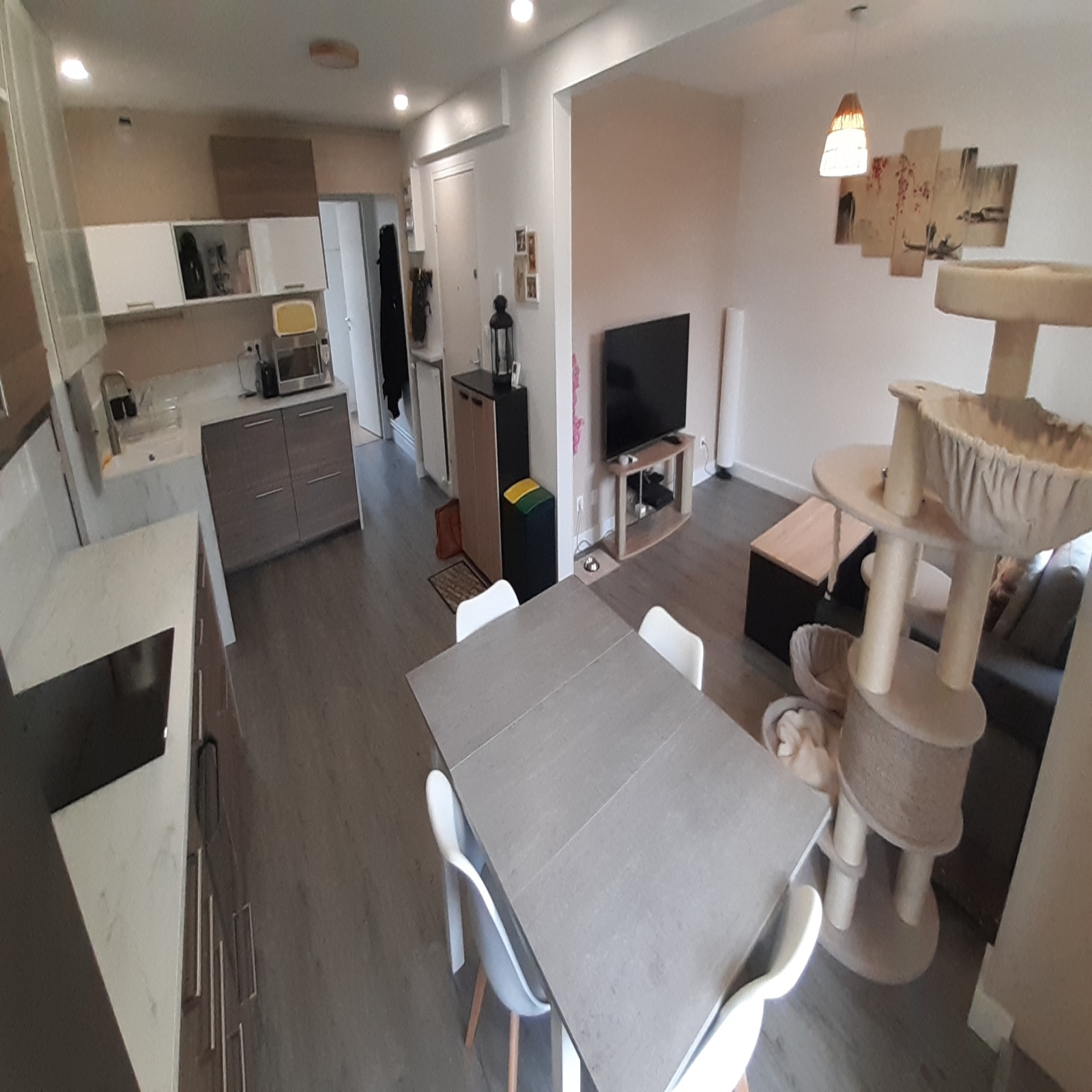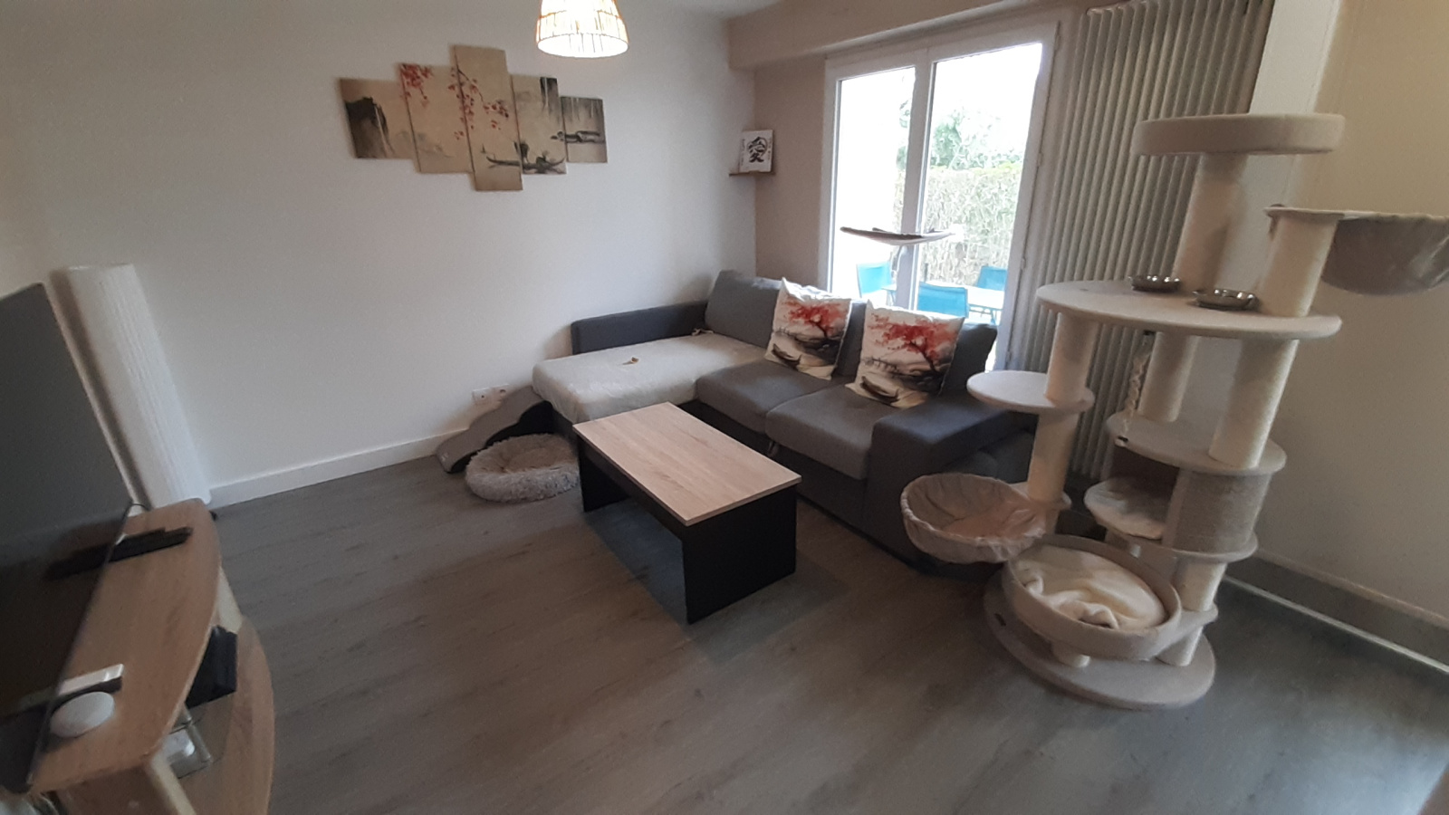 Il se compose d'une entrée, cuisine équipée ouverte sur salon/séjour, un wc séparé, un dressing/buanderie, deux chambres et une salle de douche.