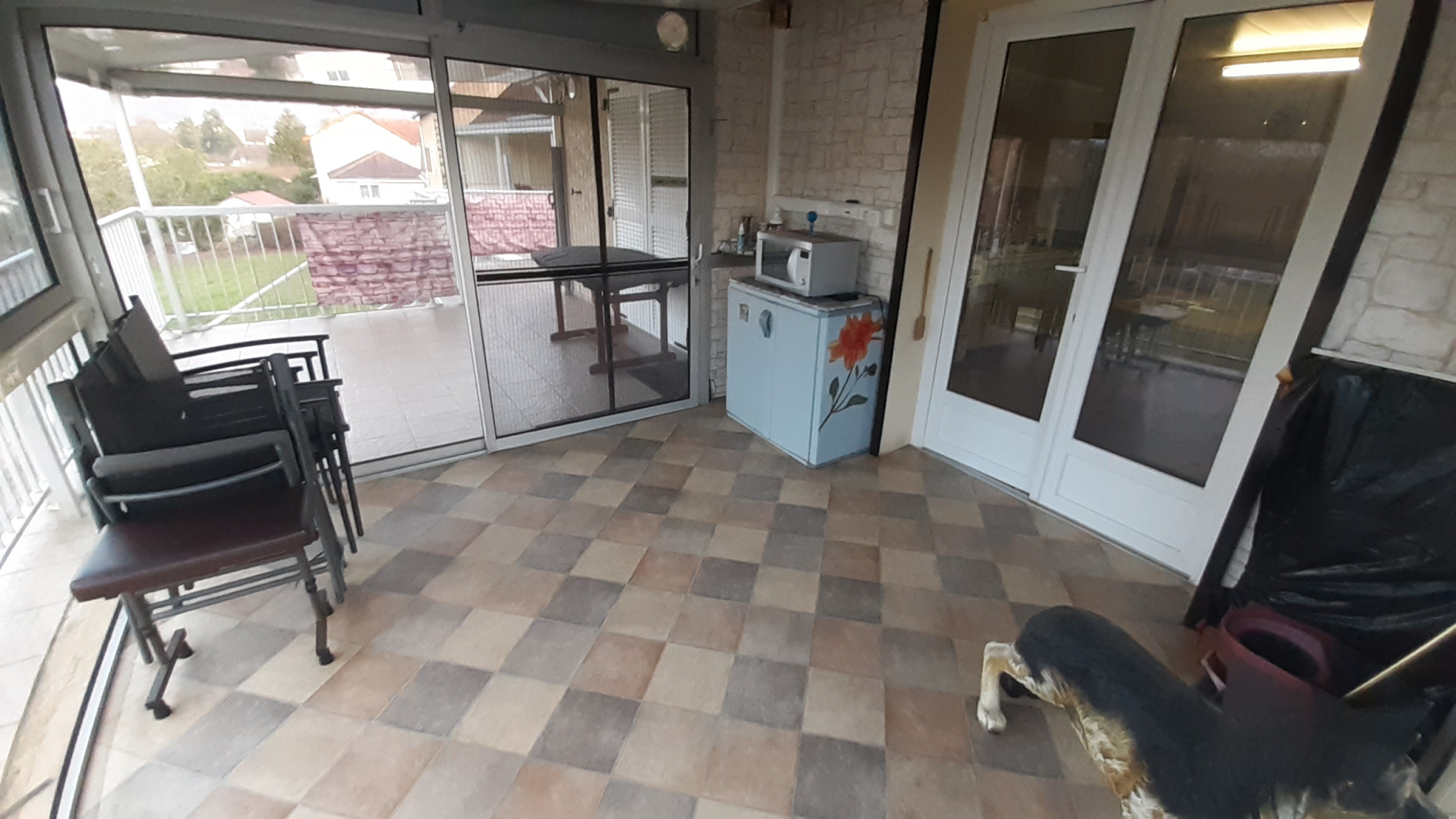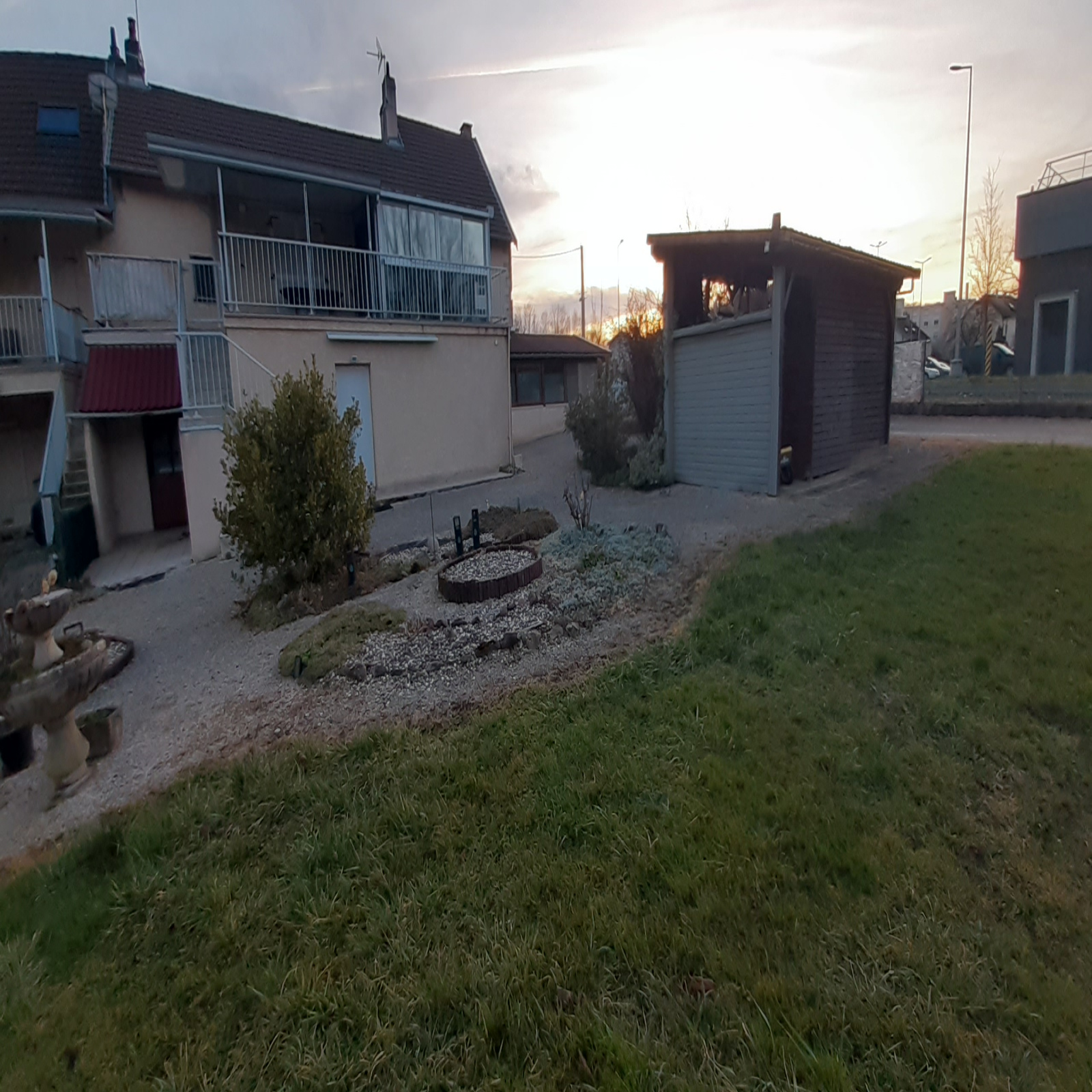 La maison de droite se compose au rez-de-chaussée: d'une chaufferie, un atelier, un garage, dépendance et cave. A l'étage: une entrée, une salle de douche, un wc, une chambre, une pièce de vie, la cuisine aménagée et une véranda. Le tout donnant sur un terrain exterieur.
