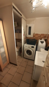 La maison de gauche se compose au rez-de-chaussée: d'une cuisine aménagée, une salle de douche avec wc, un salon, une véranda. A l'étage: deux chambres et un grenier.