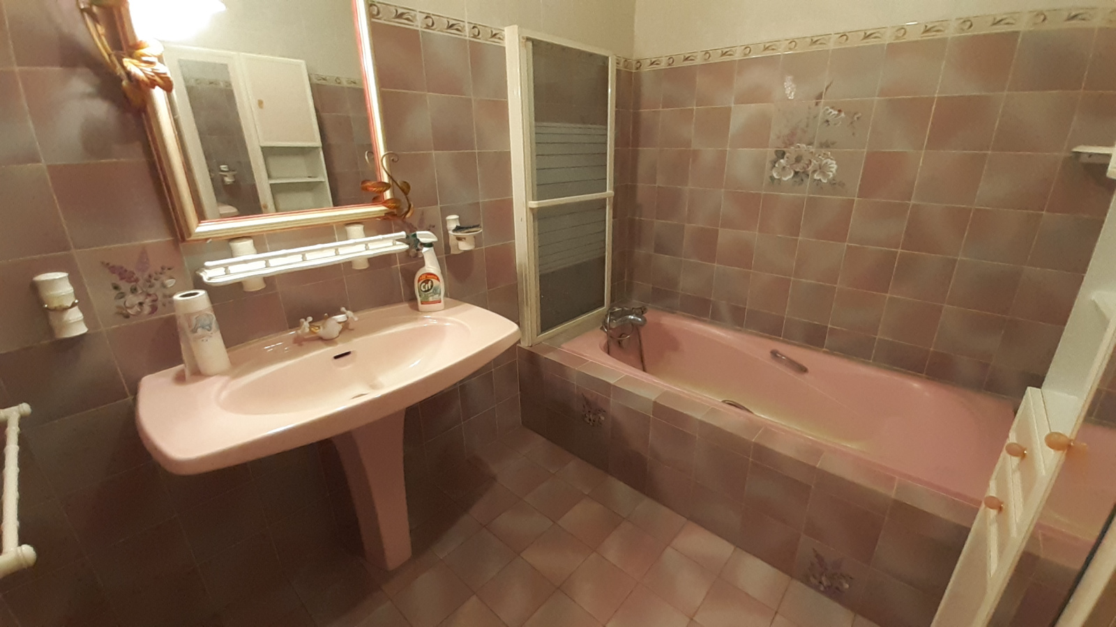 A l'étage, un couloir desservant deux chambres, une salle de bains, un wc individuel et un accès aux combles aménageables.
