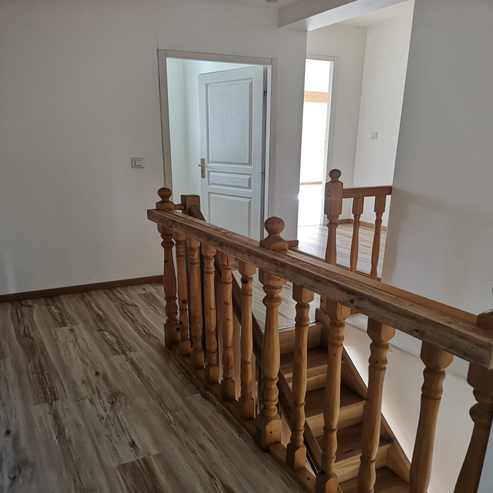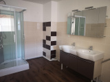 Au 1er étage, un dégagement desservant une salle de bains avec douche et baignoire, un wc individuel, trois chambres et un grand débarras.